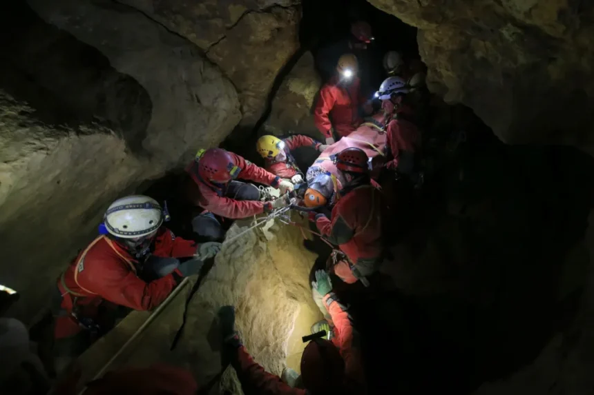 Az országos mentőkkel egyeztetett műveletben a 30 fős csapat speciális hordágyon szállította ki a sérültet, akit este 8 óra körül értek a felszínre, majd továbbkísértek a János Kórházba. A Magyar és a Bakonyi Barlangi Mentőszolgálat tagjai mellett a helyszínen jelen lévő Cave Kidz csapat is segédkezett a felszerelések szállításában.
